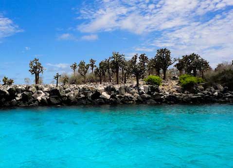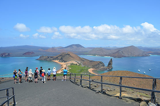 Bartolomé es una pequeña isla que a simple vista da la impresión de ser árida y desértica, pero lo que le hace sorpréndete a esta isla es el Pinnacle Rock producto de lava negra erosionada en el tiempo, así como también el hermosa paisaje que forma la Playa lunar de arena negra y blanca más la vegetación de mangle. Allí se observara a pingüinos de Galápagos, lagartija de lava, peces tropicales.