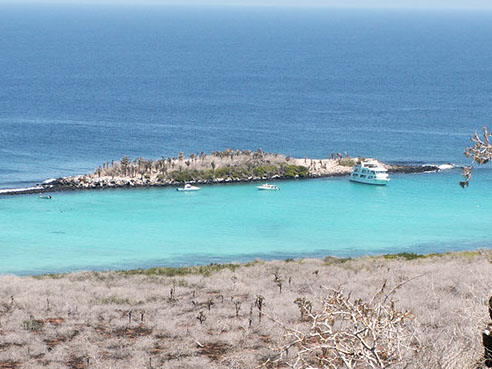 Santa Fe podría ser el volcán más antiguo de Galápagos con mezcla de lavas submarinas empujadas a la superficie por levantamiento y lavas que fueron depositadas posteriormente al levantamiento. En los grandes bosques de cactus encontrara a las iguanas terrestres únicas del mundo, que se diferencian del resto de iguanas de Galápagos por su color y tamaño.