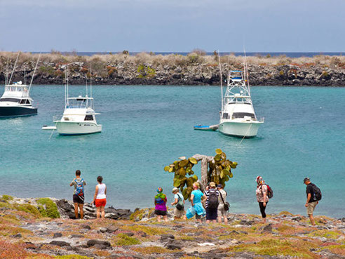 Salida desde su hotel; al muelle del canal de Itabaca para abordar el Yate que los llevara al recorrido de Seymour North y Playa Bachas. Seymour Norte mayormente es plana y árida, con pequeños bosques de cactus, palo santo y en su recorrido de aproximadamente un hora muestra los nidos de las fragatas y el danzar de los piqueros patas azules que busca aparearse. Terminado el recorrido en la Isla Seymour Norte se trasladan a Playa Bachas; principal sitio de anidación de tortugas marinas, apto para realizar actividades de buceo superficial donde se observa rayas, flamencos y otras aves acuáticas y migratorias.